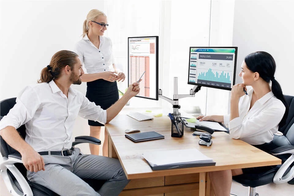 ViewSonic bietet Ihnen nachhaltige und innovative Lösungen für Ihre Arbeitsplätze. Wählen Sie aus einer Vielzahl von Produkten, die speziell auf Ihre anspruchsvolle Arbeit zugeschnitten sind. Modernste Konnektivität der neuesten Generation, darunter USB 3.1 Typ-C für die Bereitstellung von Strom, Daten, Video- und Audiofunktionen über ein einziges Kabel, sowie HDMI- und DisplayPort-Anschlüsse, erleichtern Ihre Konnektivität und sorgen für höchste Qualität. Verbessern Sie das Wohlbefinden Ihrer Mitarbeiter mit ergonomischen Standfüßen und flexiblen Einstellmöglichkeiten unserer Monitore. Integriertes Kabelmanagement sorgt für Ordnung und Ästhetik an Ihrem Arbeitsplatz. Lassen Sie sich von unserer Bildergalerie inspirieren, wir beraten Sie gerne und stellen Ihnen die verschiedenen Produkte persönlich vor. Wir gestalten Ihre Arbeitsplätze benutzerfreundlich und sorgen für ein Höchstmaß an Arbeitsfreude. Unsere Arbeitsplatzlösungen schonen Ihr IT-Budget, reduzieren die Gesamtbetriebskosten und verlängern die Lebensdauer Ihrer IT-Investitionen.